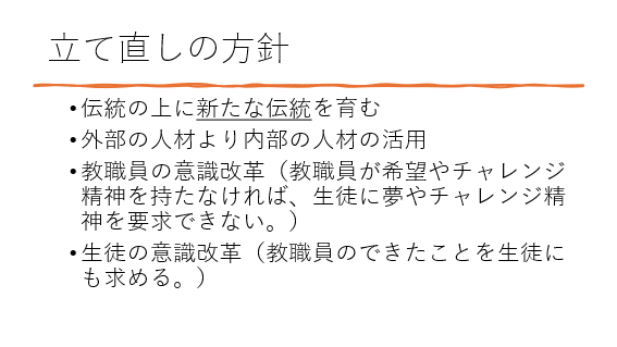しかし、2010年代のこの足踏みが、結果的には危機の共有を促し、何名かの教職員自身が希望やチャレンジ精神を持てたことで、私たちに最後の力を与えられたと考えています。